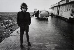 Taken by Barry Feinstein in 1966 during the Rebel Tour, the photo caught Bob waiting for the ferry to take him from Bristol, over to South Wales. (No bridge at that time, you can see them building it in the background!).